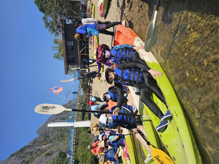 그 후 아름다운 절경 속을 헤치고 강을 내려오면서 방비엥의 산수를 감상할 수 있는 카약킹을 하고