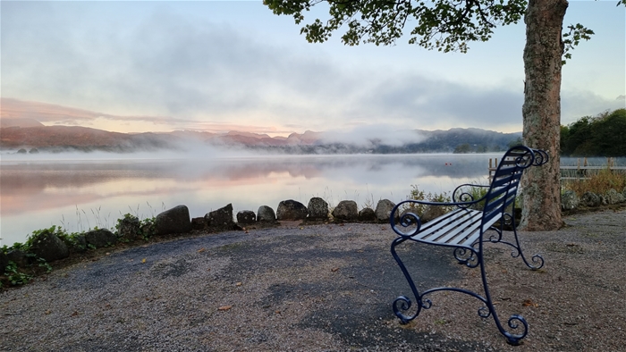 윈더미어 호수의 물안개 쨍한 윈더미어 호수