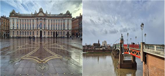 ▶ 툴르즈 : 앙리 마르텡 그림과 카피톨 광장의 시청과 생피에르 다리의 항공 도시